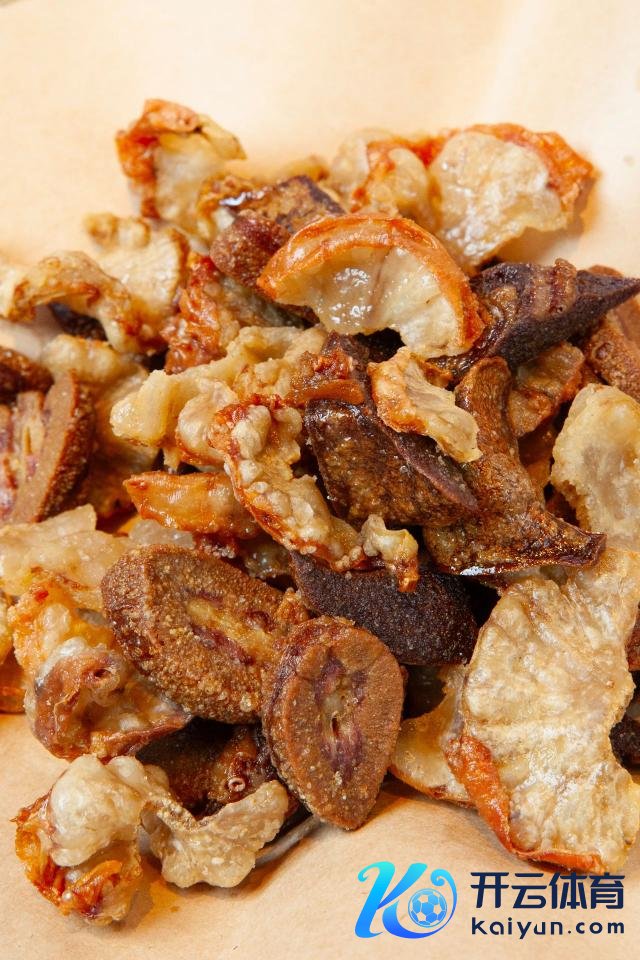 和先炸后熘的肉菜不同,种种内脏则省去了勾芡,以油脂和油炸脆皮形成最原始的碰撞。东北的夜宵场上,老迈们推杯换盏之间,少不了点上一王人炸沙肝(脾脏),黑黢黢的外名义目可憎,咬下去却是外酥里嫩、极少不腥,越嚼越隽永,号称下酒筵界的 C 位。腹地餐馆里,一王人炸猪沙肝、猪腰、猪大肠油合体的"炸三样",更是油脂的盛宴。炸好之后撒上一把椒盐就出锅,每一口下去都酥香无比,是无比罪状的"大补"硬菜。