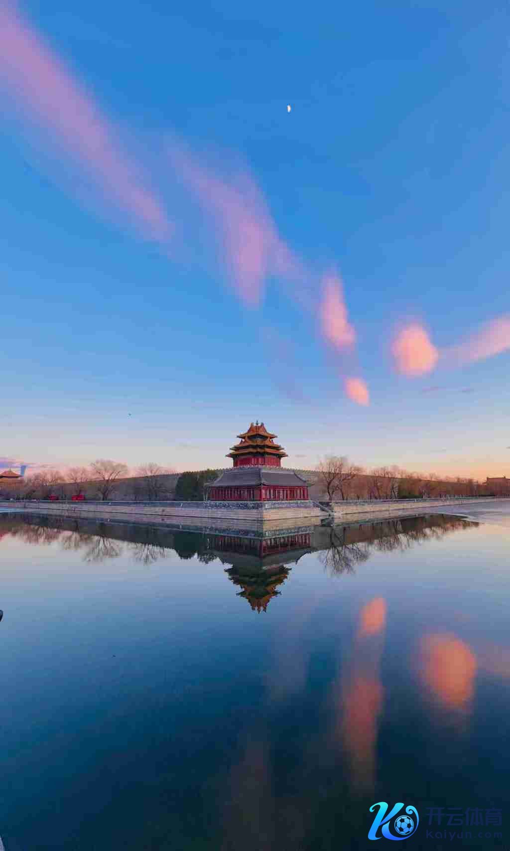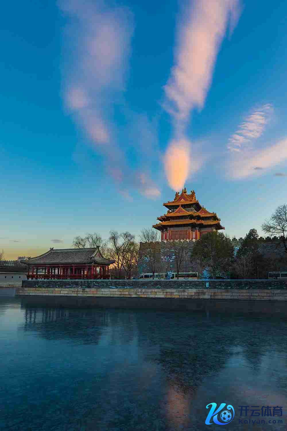 故宫角楼古韵依旧,摆动的彩云追逐着月亮,和顺簇新的画面反照在水中,为冬日的京城增添了几多自大色调!