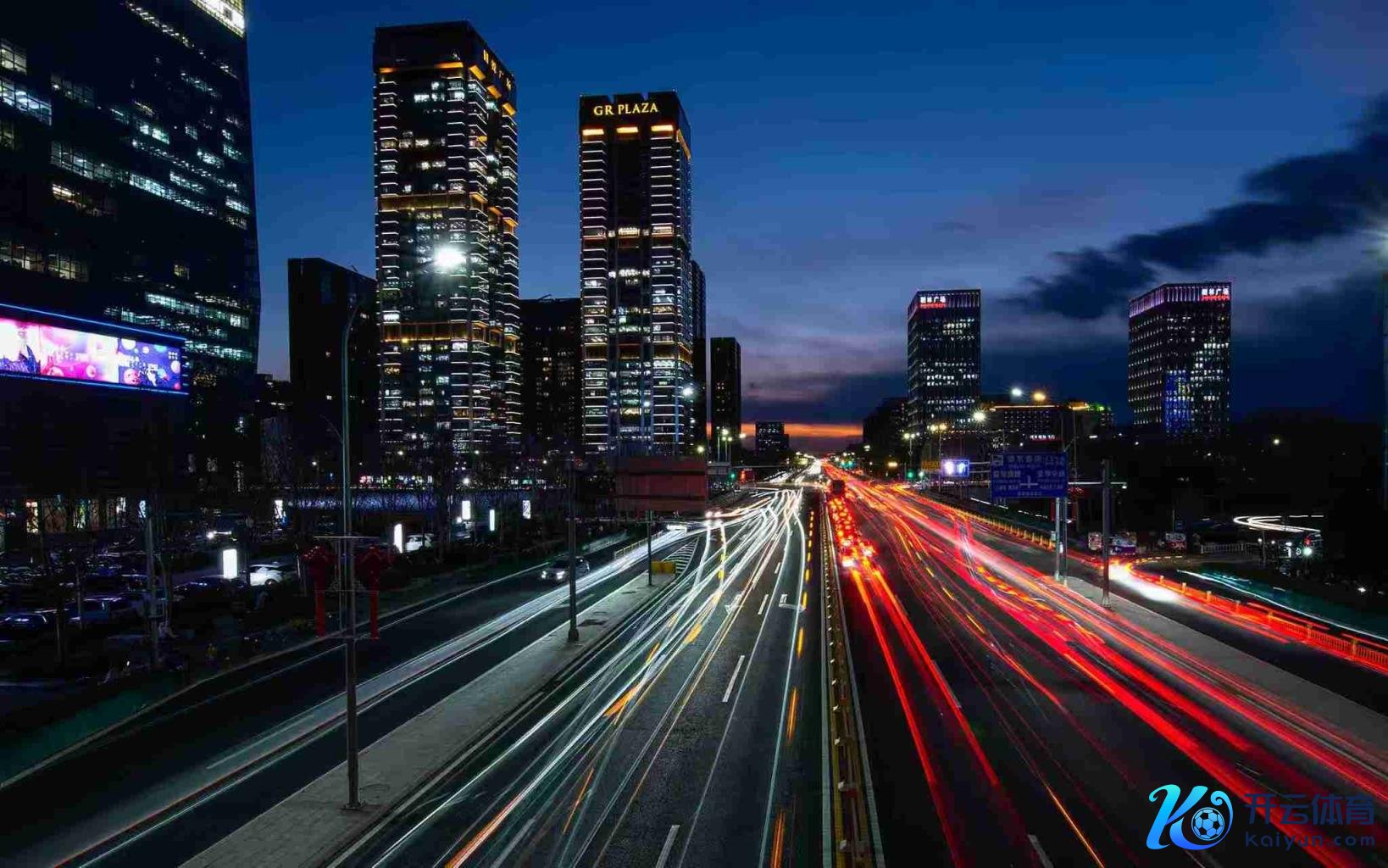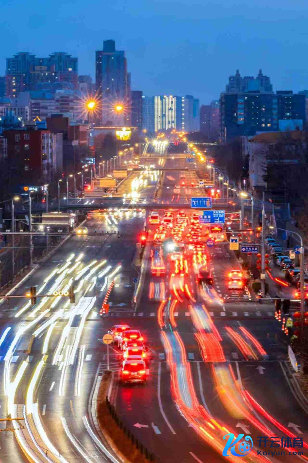 落日之后,在亦庄,南来北往的放工车辆收罗成流光溢彩的光影轨迹。