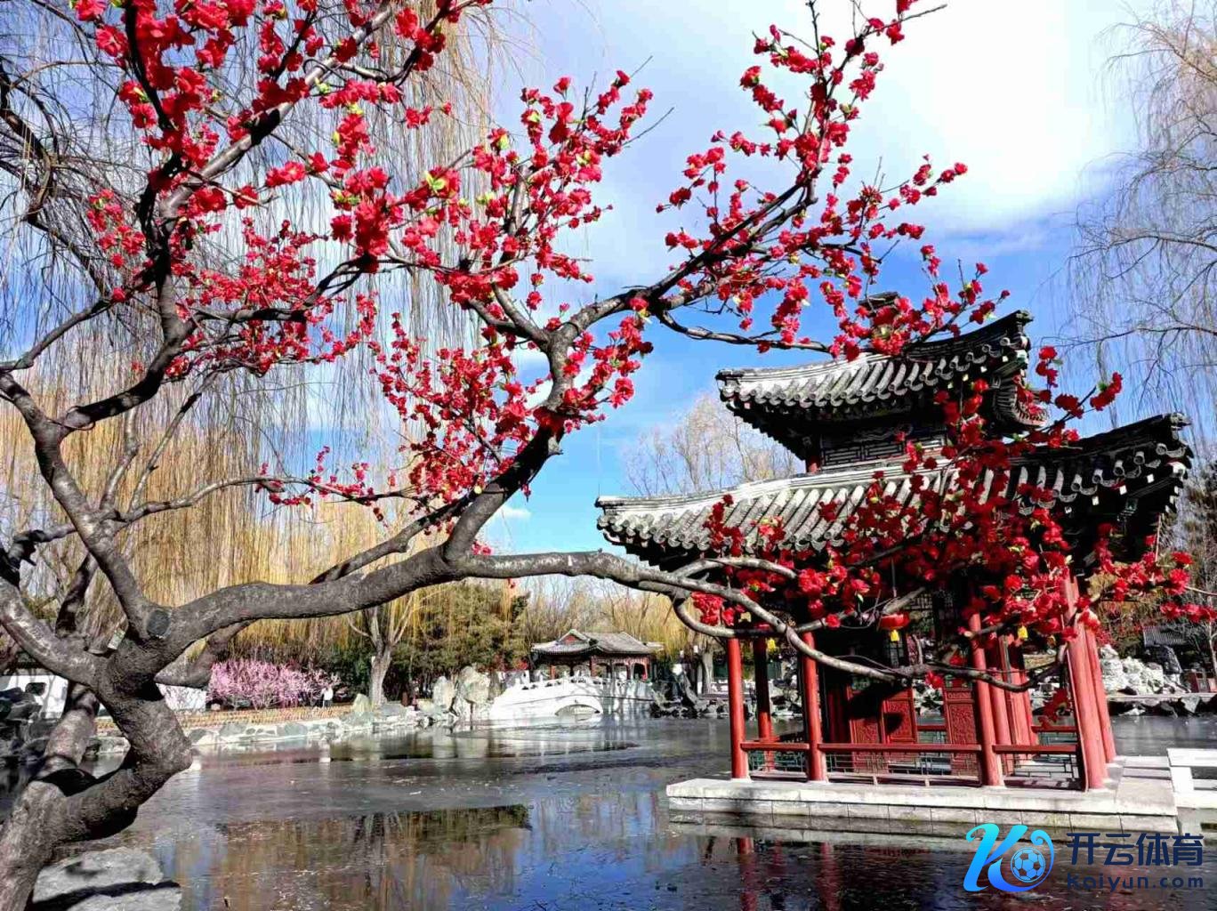 春节操纵,大不雅园内顶住的景不雅春光如海。
